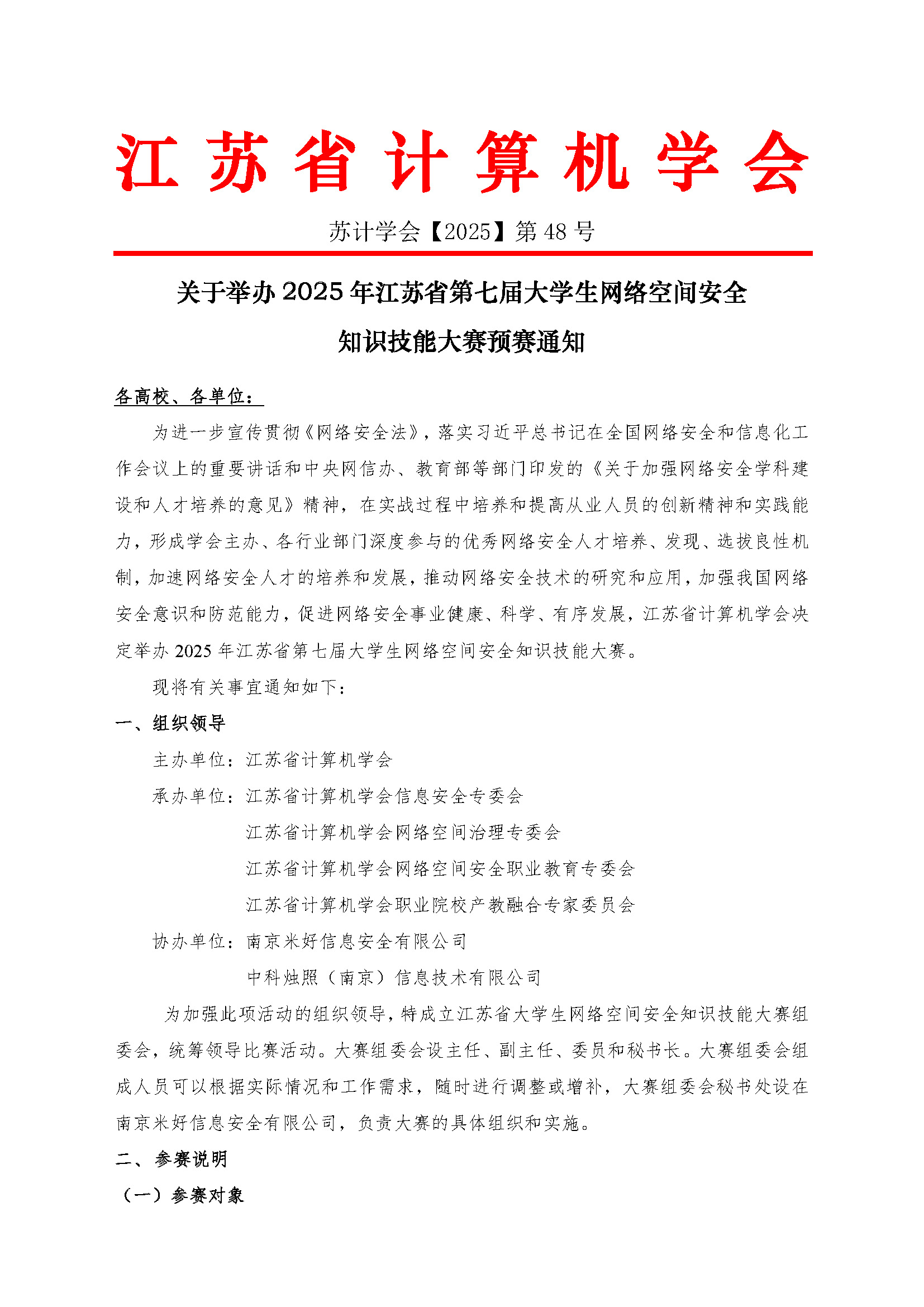 【转发】关于举办2025年江苏省第七届大学生网络空间安全知识技能大赛预赛通知
